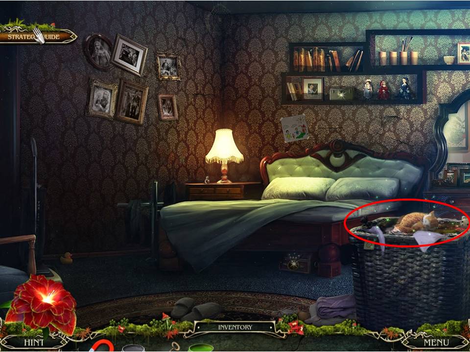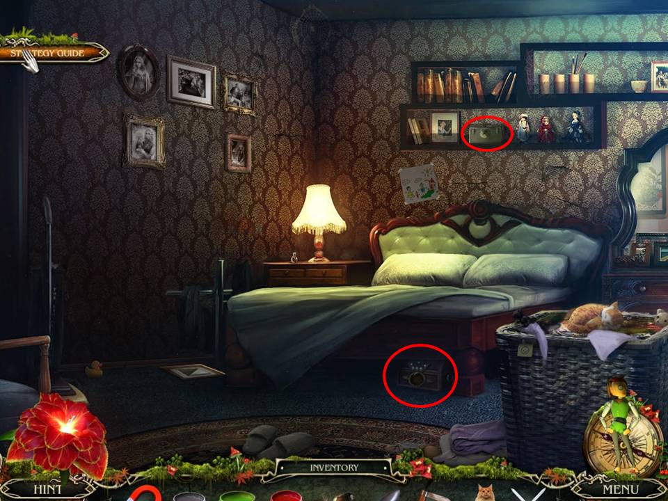 - Examine the room, take the SCARF from the windowsill, and then look at the diary hidden underneath the pillow.