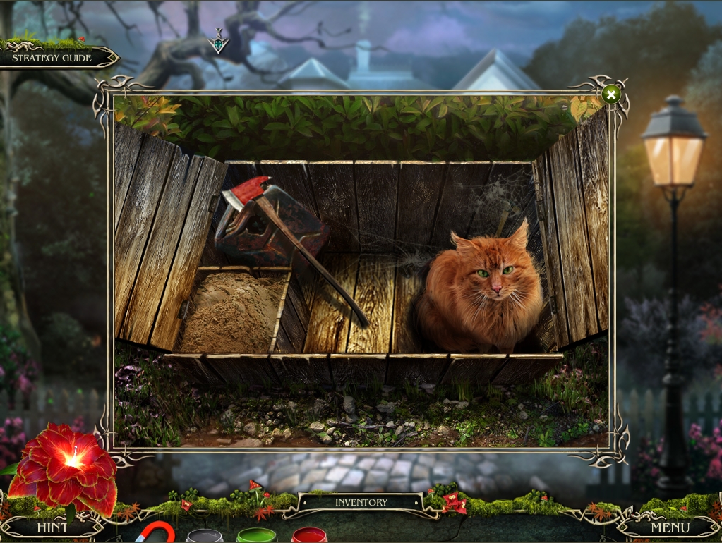 - Use the FIREBOX KEY on the firebox lock, take the AXE inside, click on the cat to watch him snarl at you, then return back upstairs and use the AXE on the left door.