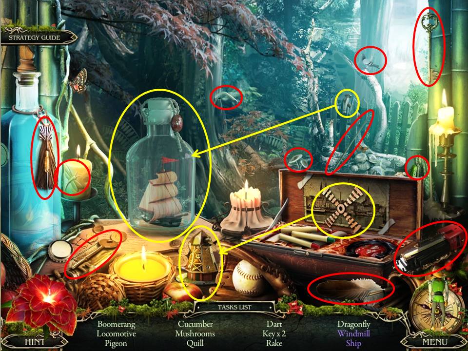 - Multiple movement objects include placing the blades back on a windmill and breaking open the bottle with a hammer to obtain the ship.