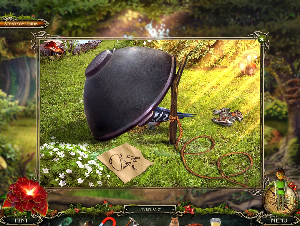 - Head to the forest, and use the STOCKPOT, THREAD, GRAIN and FORKED STICK to create an old-fashioned trap on the grass.