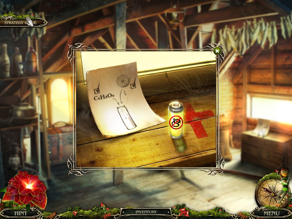 - Return to the attic, place the LEMON JUICE on the medicine chest, and take the resulting YELLOW VIAL.