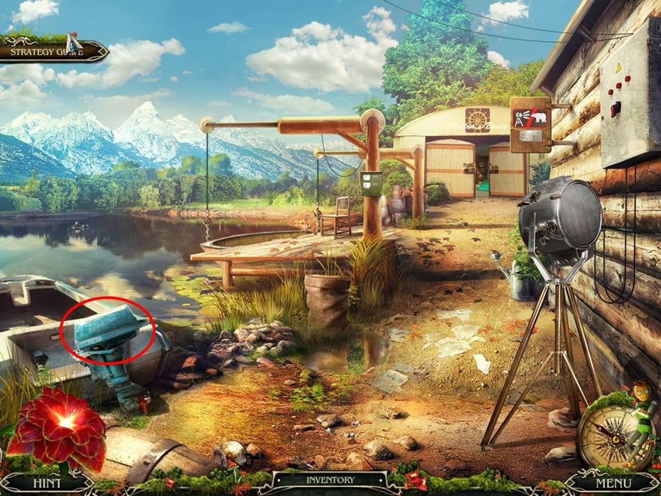 - Return to the boat dock and use the SCREWDRIVER on the outboard engine.