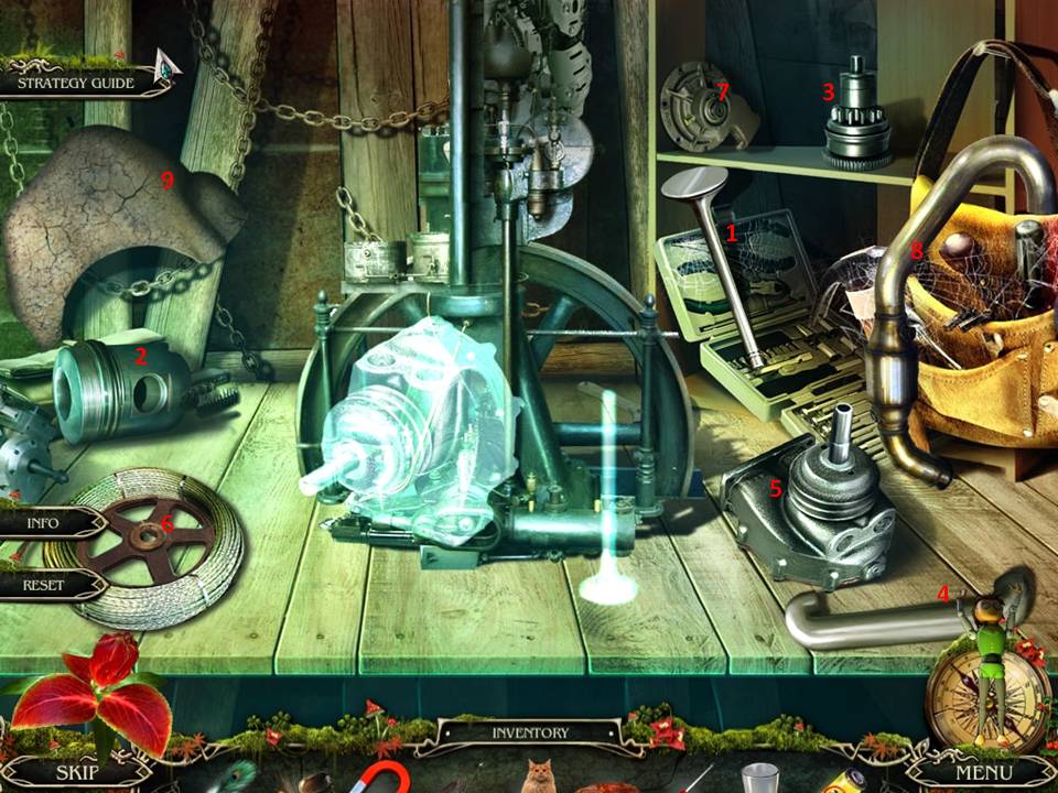 - Examine the outboard on the boat by the shore, and pick up the CRUCIBLE.