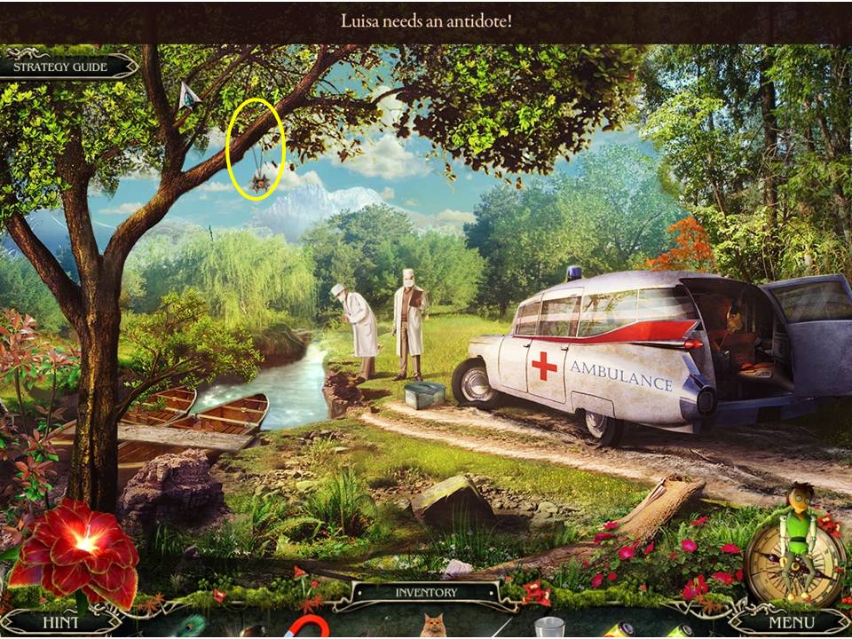 - Move to where Louisa is resting, and use ANTIDOTE on her leg.