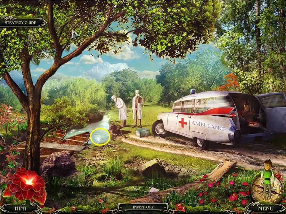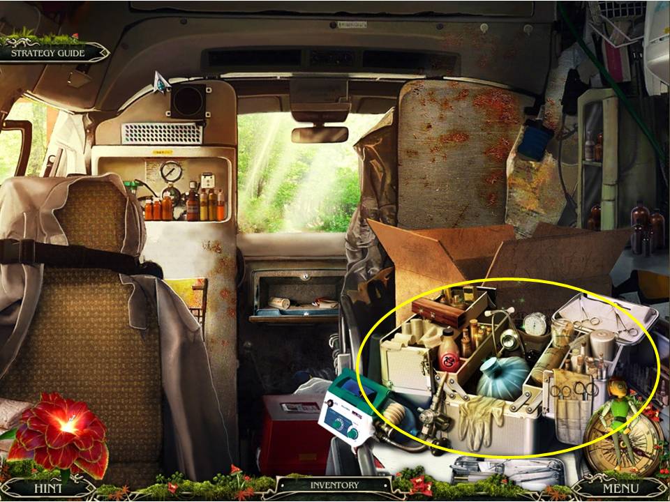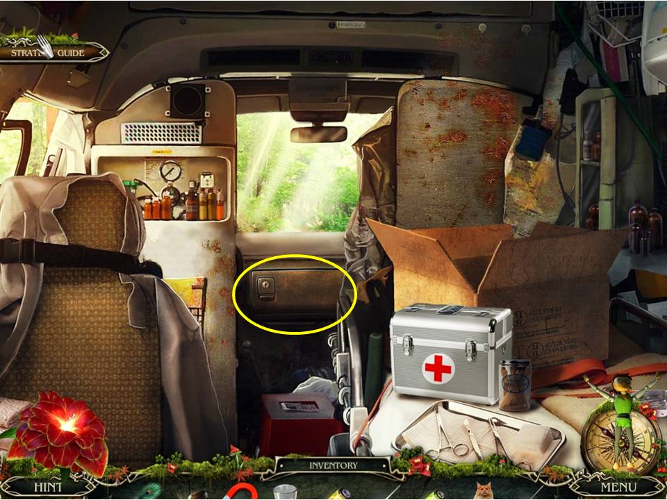 - Go to the nearby ambulance and use the LEAF AMULET on the case to retrieve the SYRINGE inside.