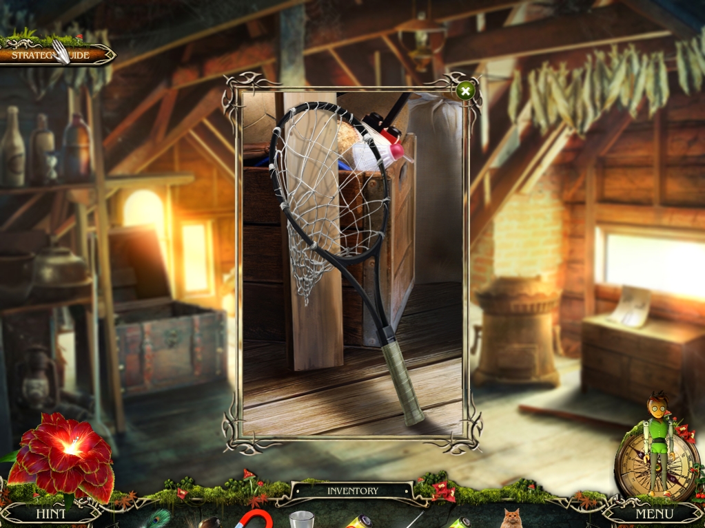 - Return to the attic and use the FISHNET on the tennis racquet to create a SCOOP NET.