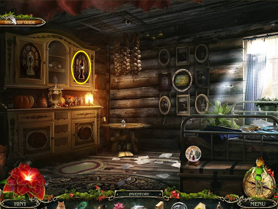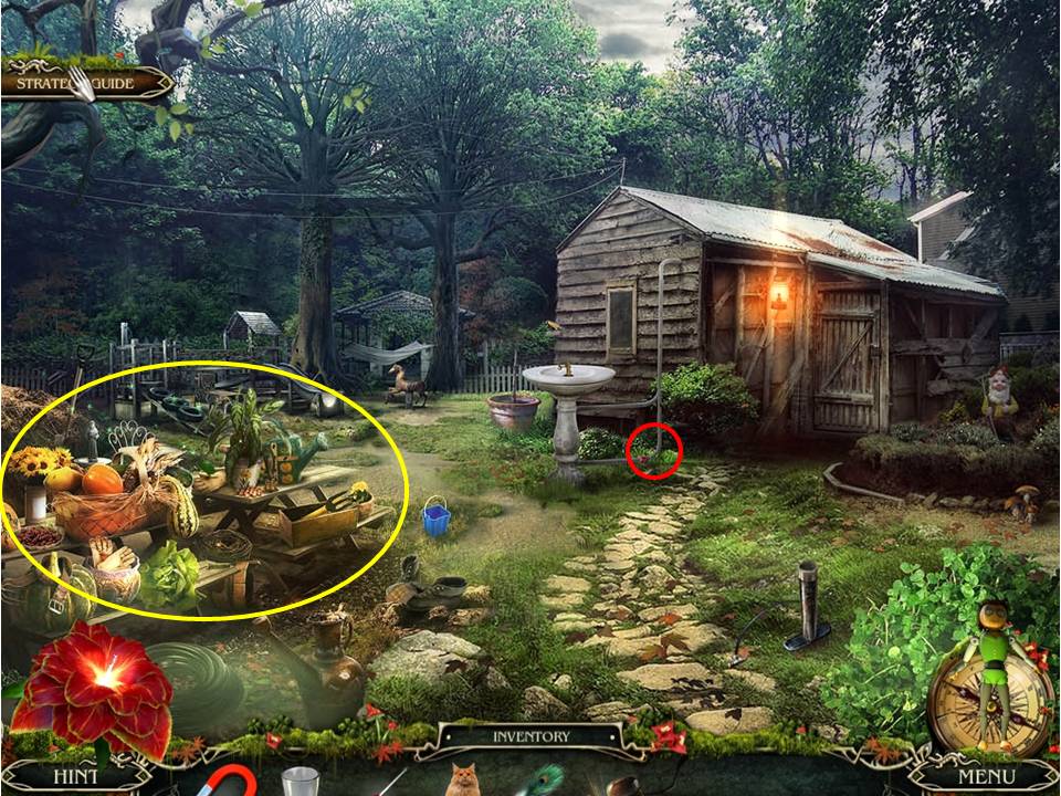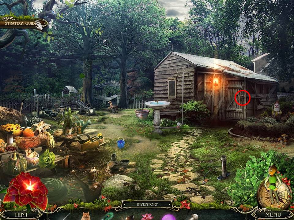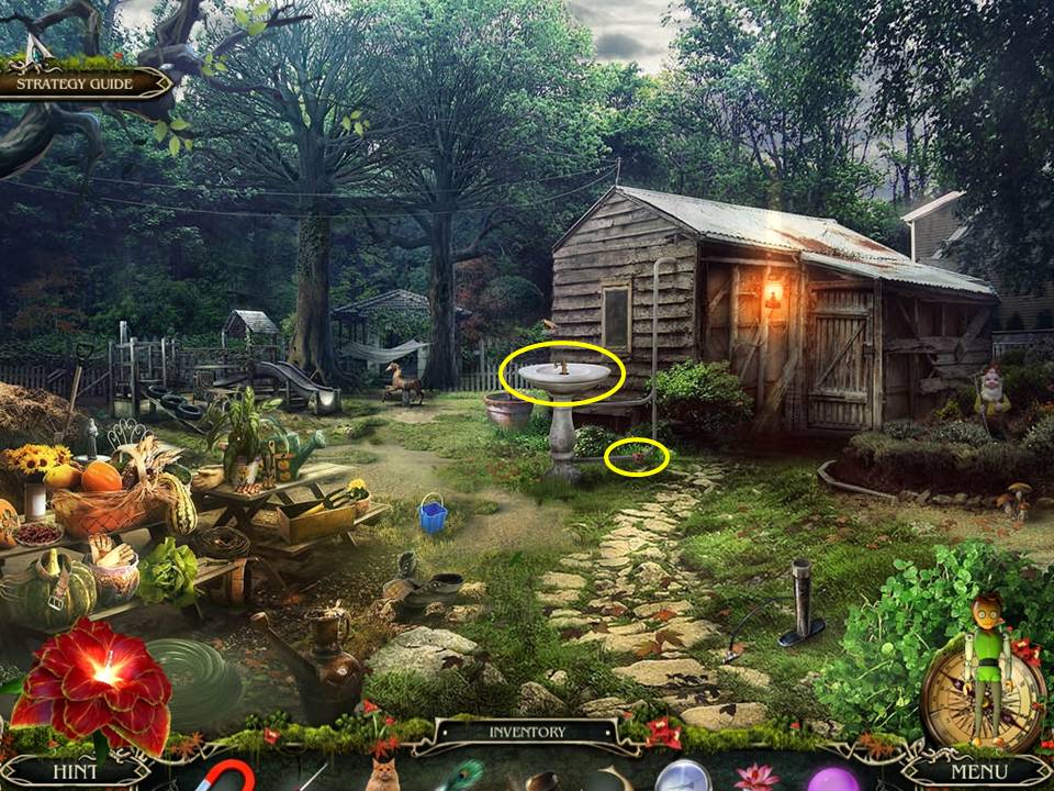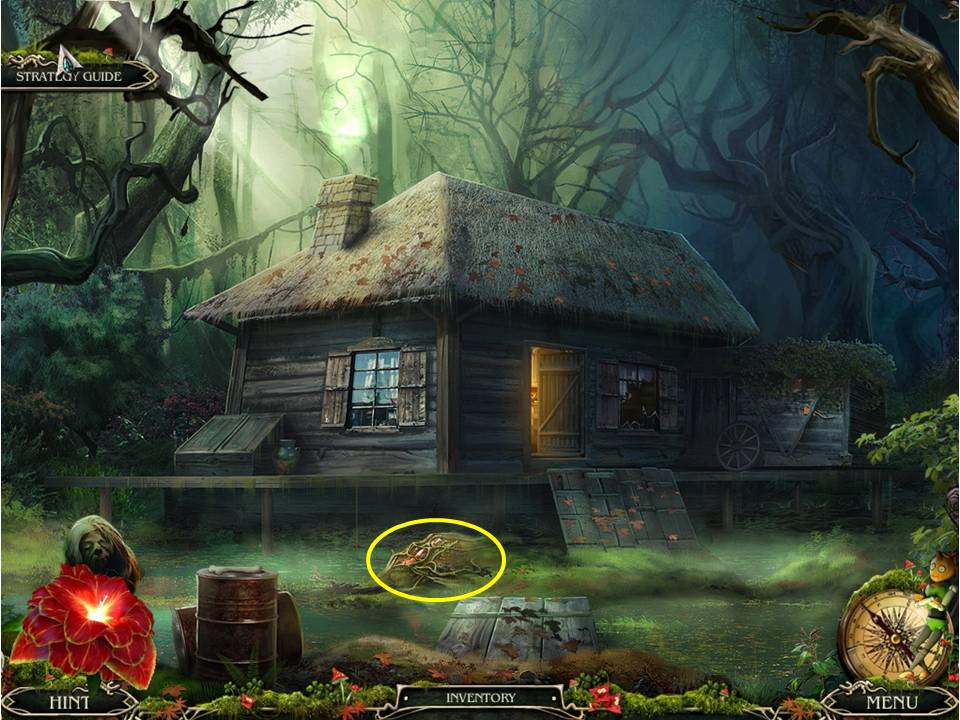 - Return to the swamp house exterior, put the FERTILIZER on the flowers, and retrieve the FIGURE.