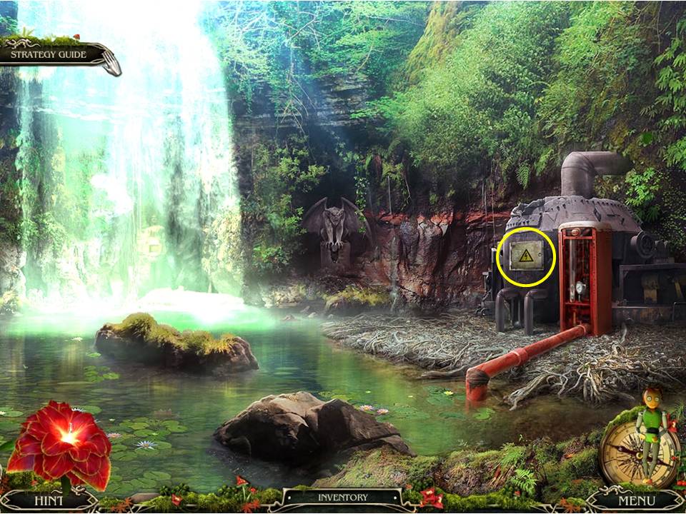 - Go to the waterfall, open the electrical box, and insert the TOGGLE and the FUSE in place.