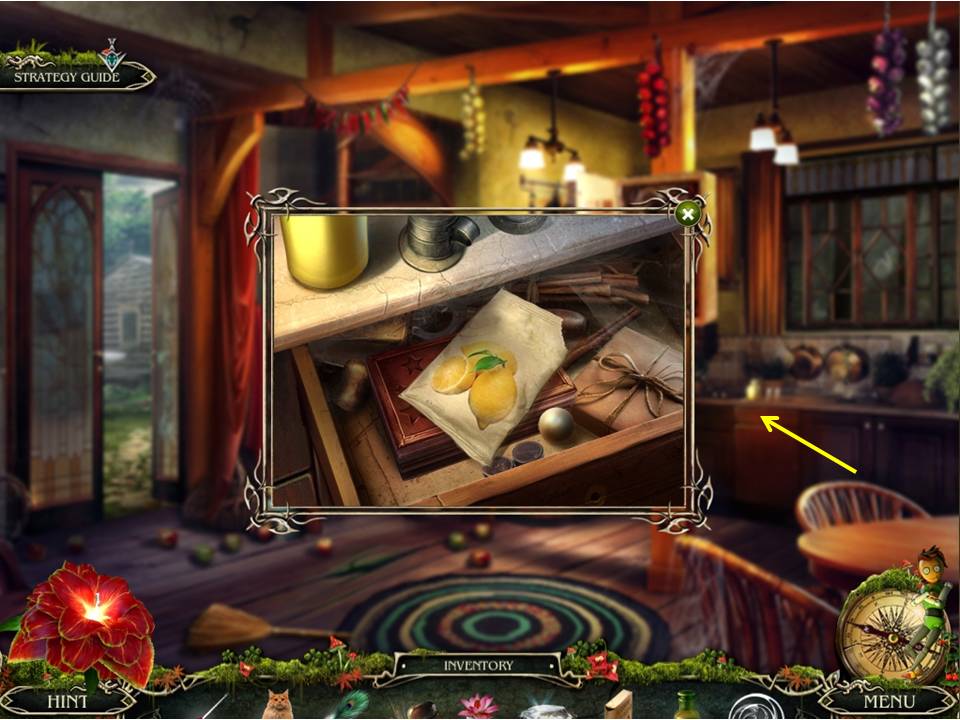 - Go to the kitchen and use the HOOK to open the drawer.