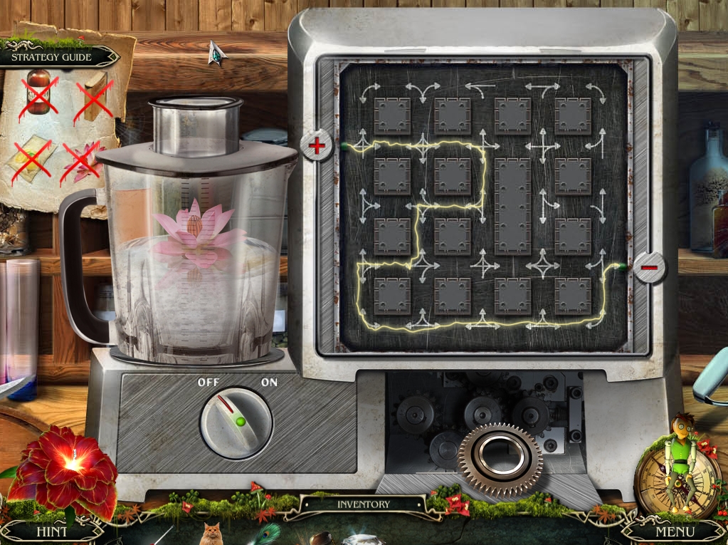 - Go back to the workshop, put the METAL FLOWER on the mixer, and toss in the POWDER, FLOWER, CITRIC ACID and the ALCOHOL to trigger the next puzzle.
