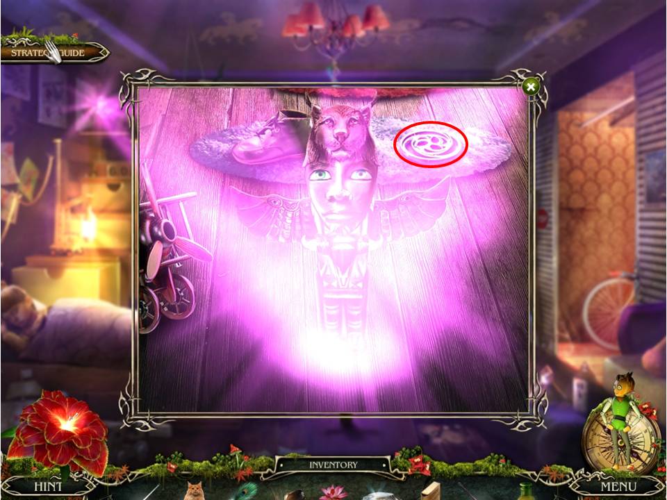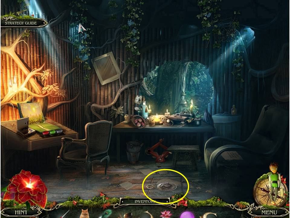 - Go to Brandon’s room and put the TOTEM on the floor in the middle of the room for another light show – take the METAL ROSE.