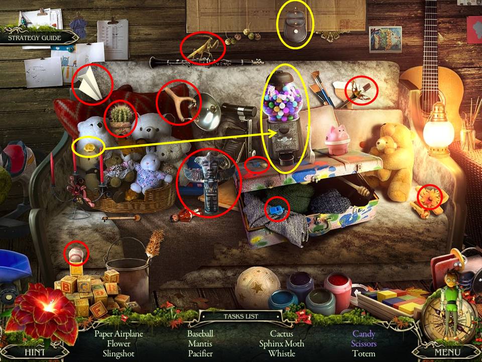 - Pick up the objects circled in red.