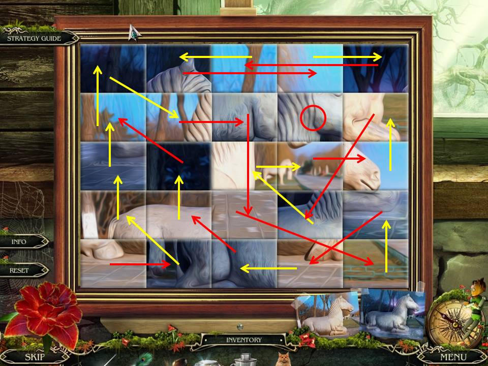 - The aim is to move adjoining squares to correct the picture – see the screenshot for the solution.