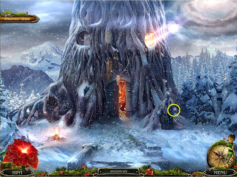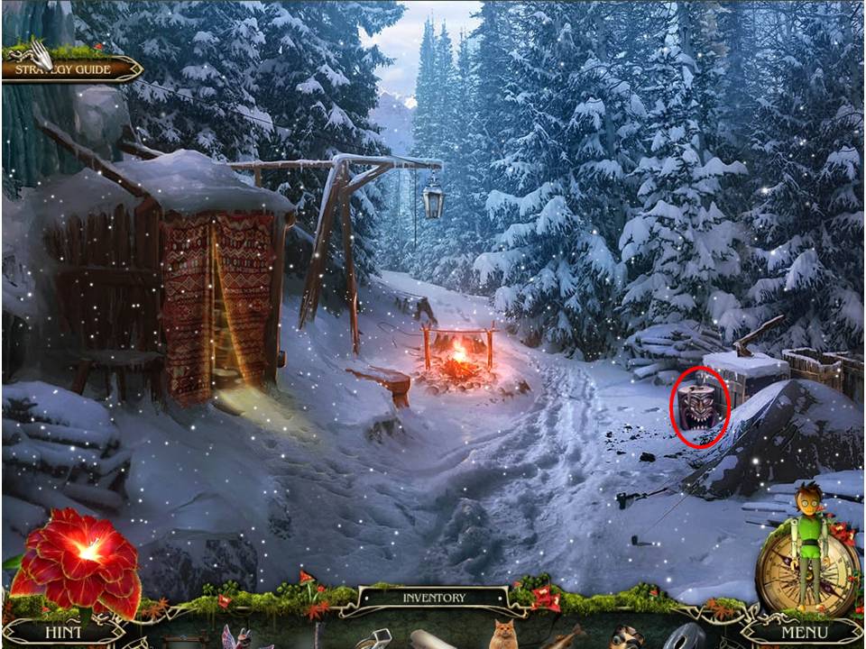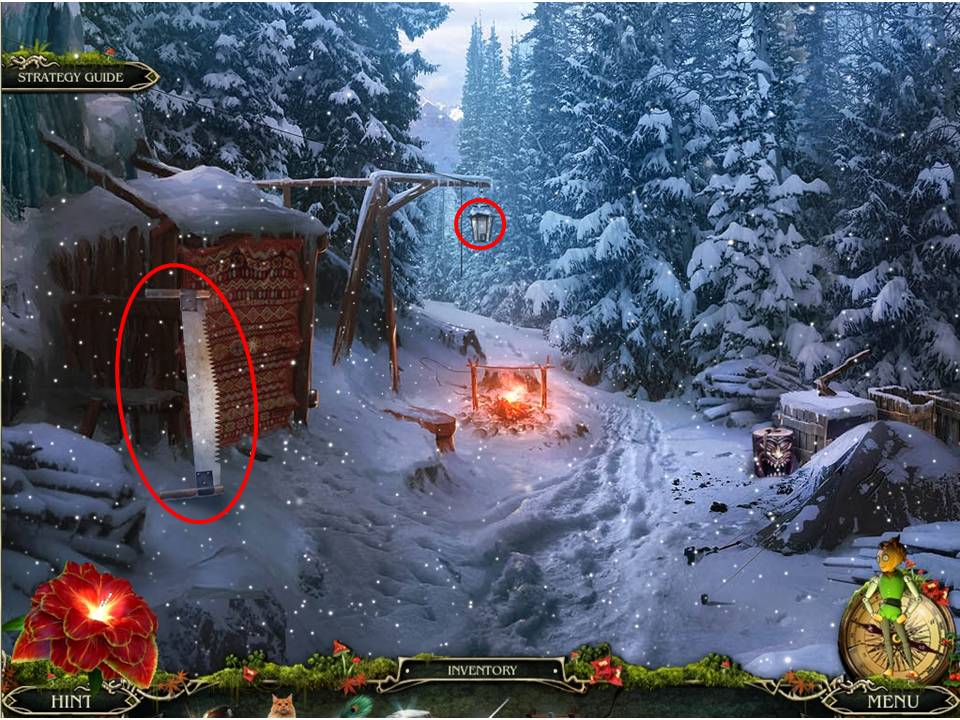 - Use the SNOWSHOES to walk up the pathway to the right until you find the small clearing.