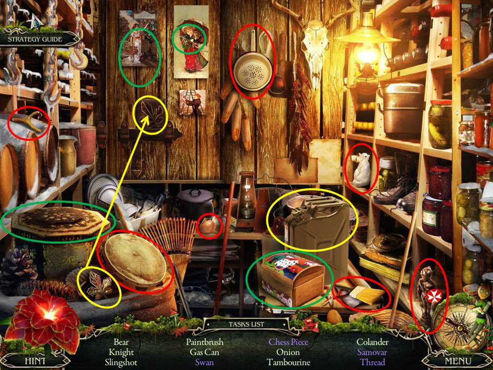 - Multi-move items include locating a chess piece inside the box, using the leaf on the cabinet to obtain the samovar and swan, and getting the thread from the chest.