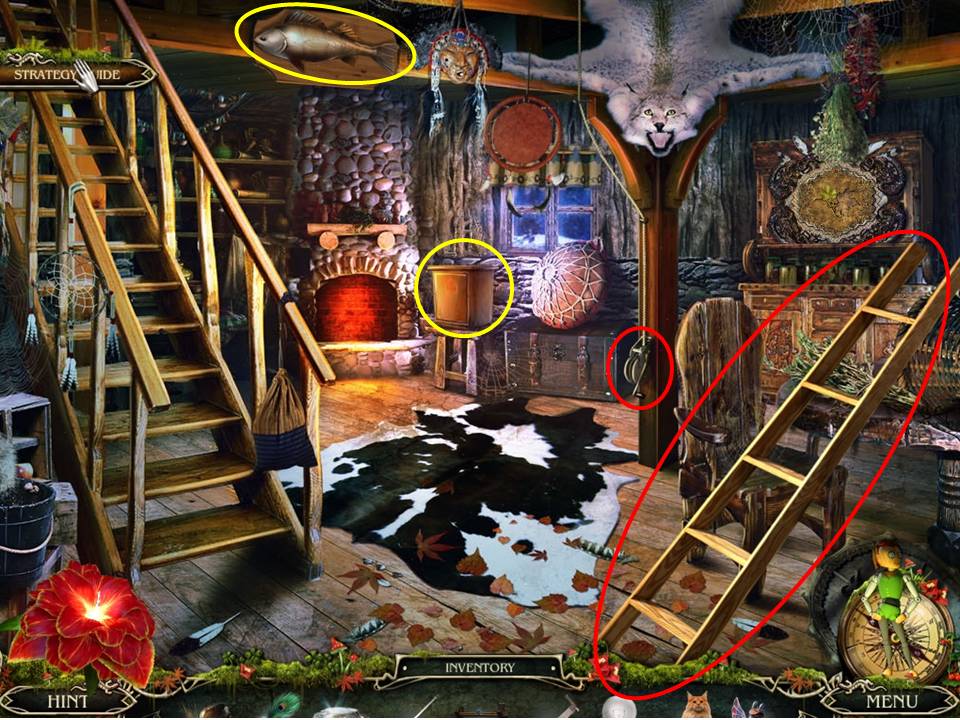 - Enter the Shaman’s house, take the WINCH and LADDER, and open the medicine chest to obtain the BANDAGE.