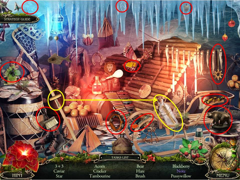 - Return to the ice tunnel and place the EAGLE in the appropriate niche, then take the HAY.