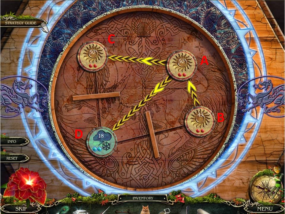 - The second stage is the hardest, because you have to get going quickly to stop the cloudy discs outnumbering you. Direct your sun energy from A towards B, and as soon as B converts to a sun, direct its energy towards A and switch A towards C. When C changes, direct it towards A, then aim A at D. If you’re quick enough the combined power should be enough to beat D and turn it into a sun. Too slow and it will reach 50 and be impossible to budge, meaning you have to rset and start from the first stage again!
