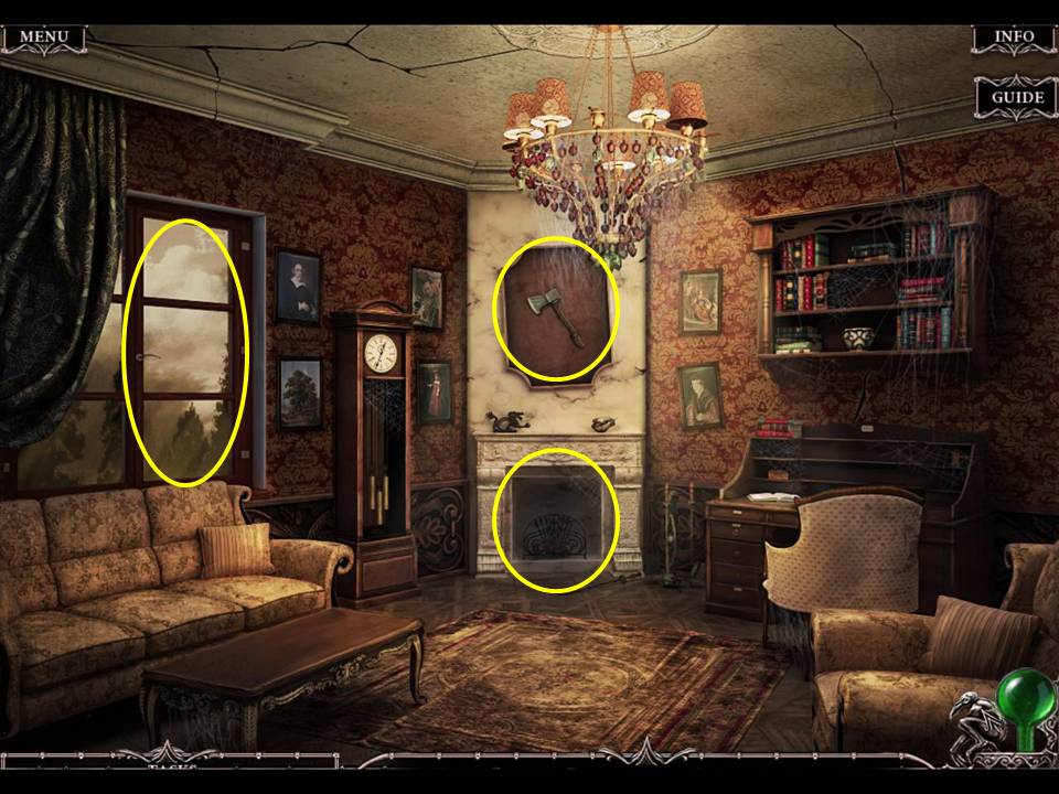 - Zoom into the bottom cabinet to the left of the fireplace.