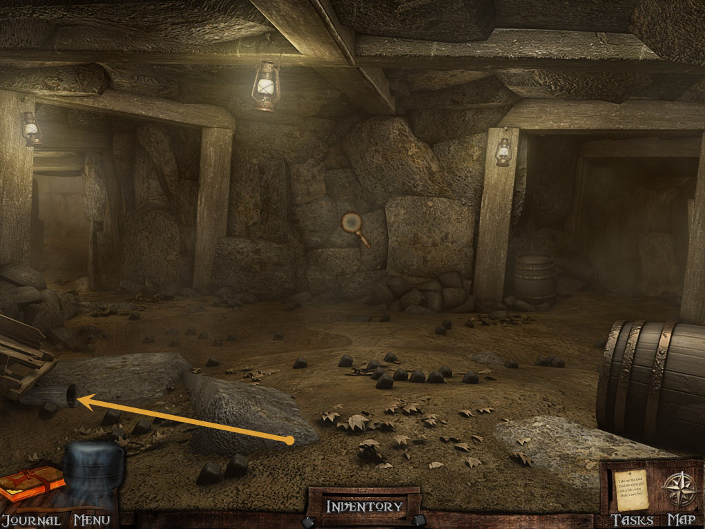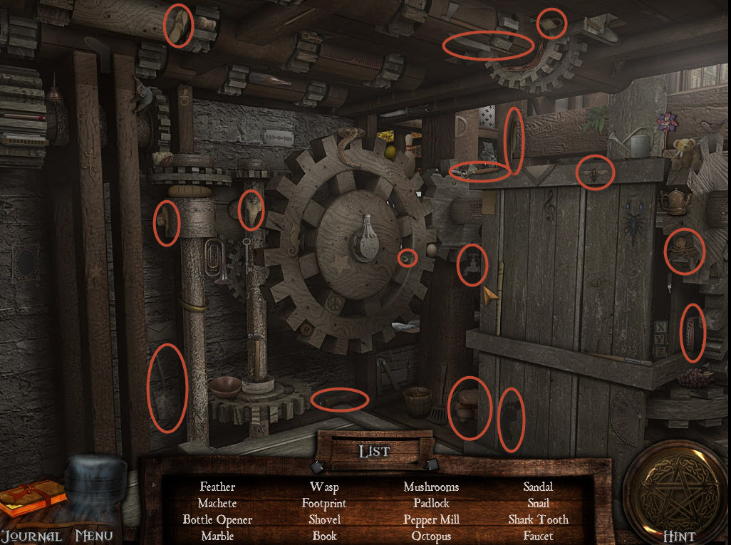 Complete the Hidden Object puzzle in the back of the room to collect the shovel.