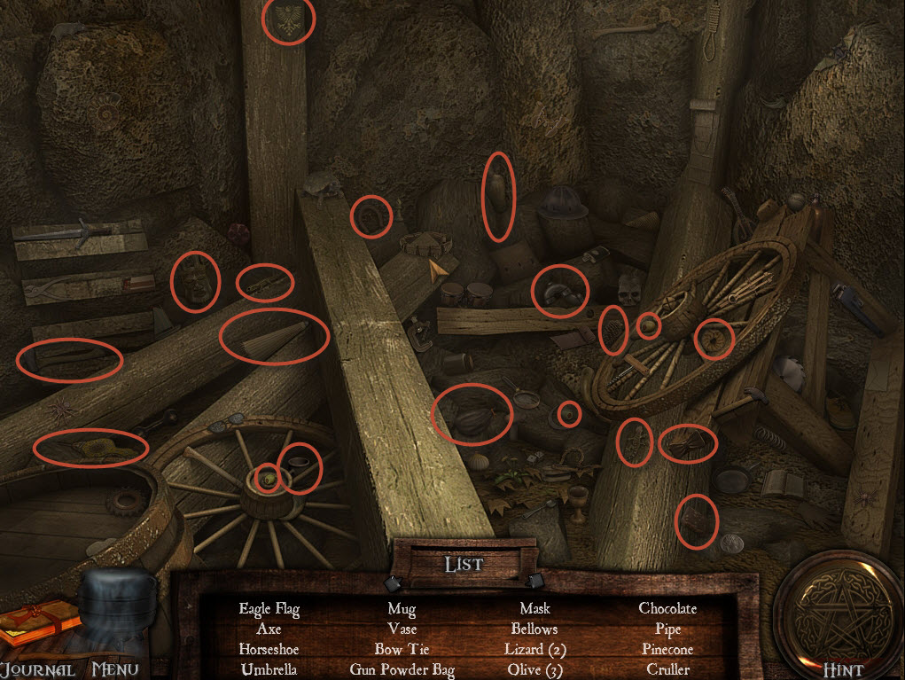 Light the second lamp (2), and as you proceed you will see a Hidden object puzzle.