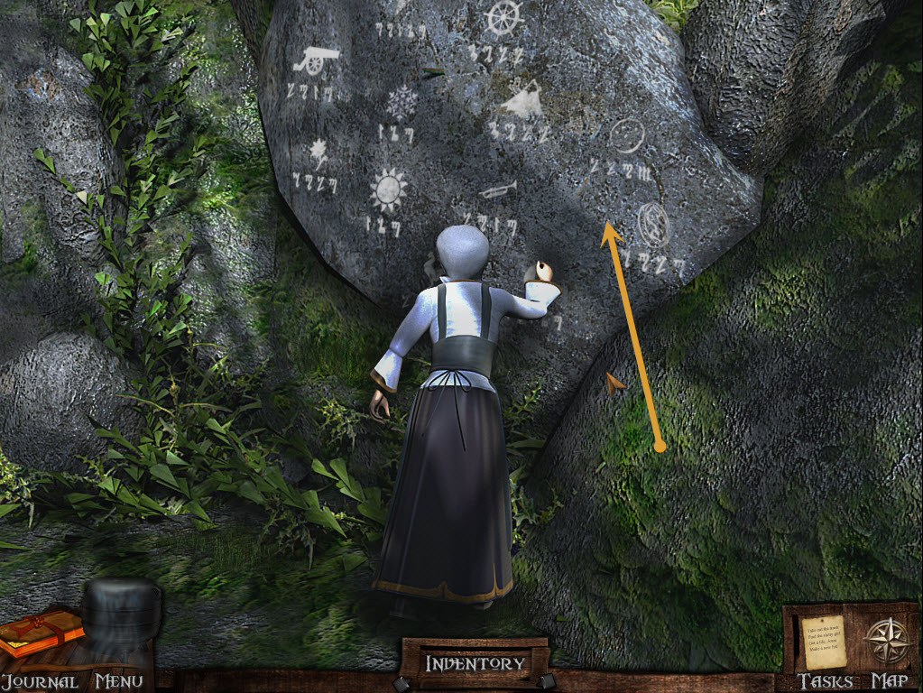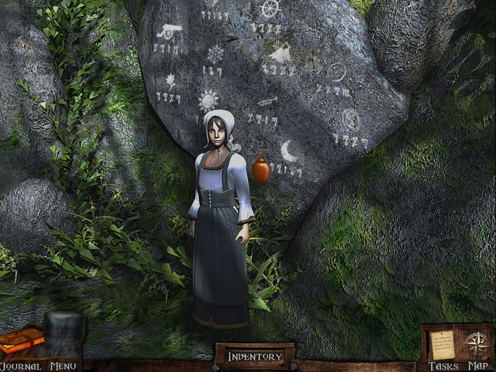 Some of these symbols (runes) will be copied into your journal to be used later. Go to the town crossroads, and right to the schoolhouse.