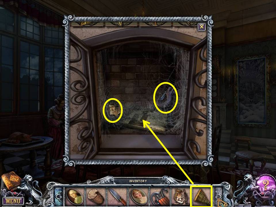 - Take the PORTRAIT and the DUSTPAN.