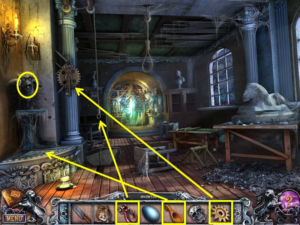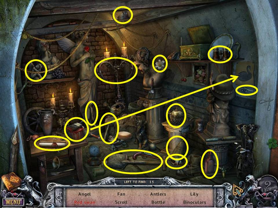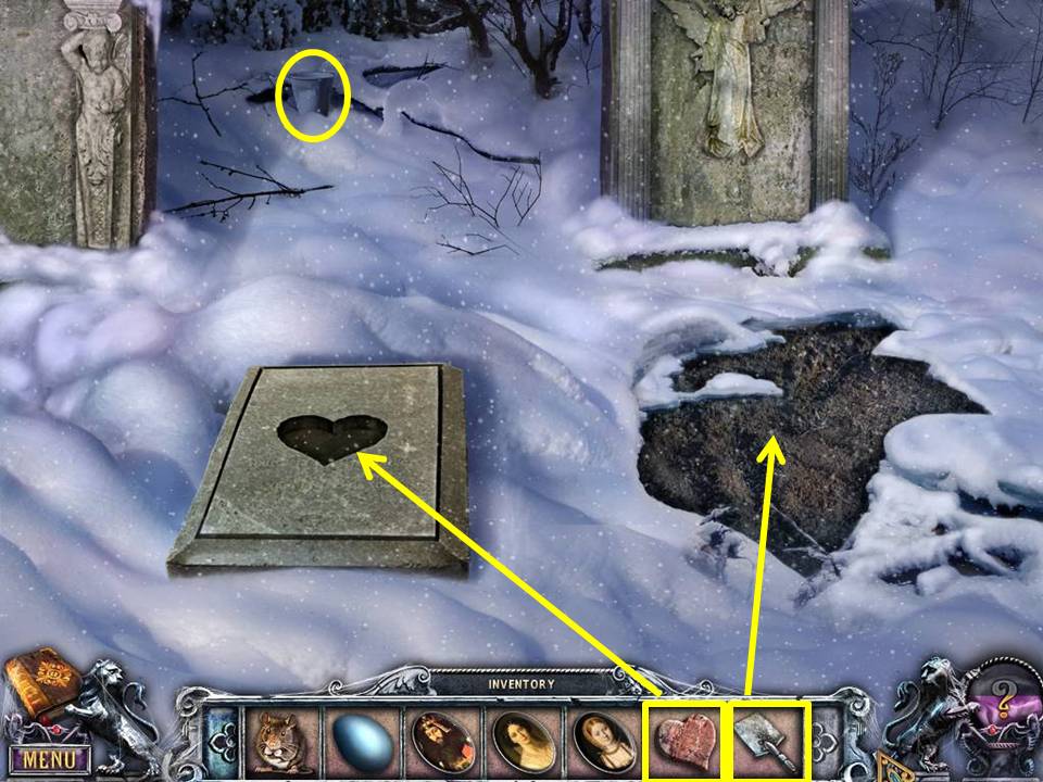 - Dig out the coffin of the sculptor’s wife with the SHOVEL.