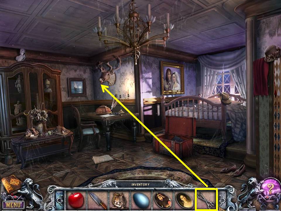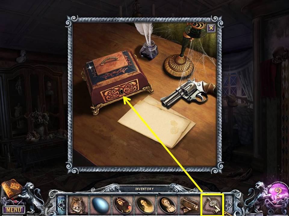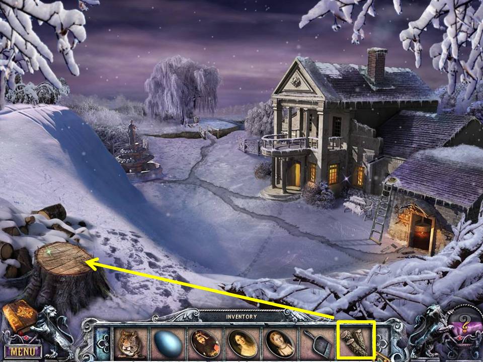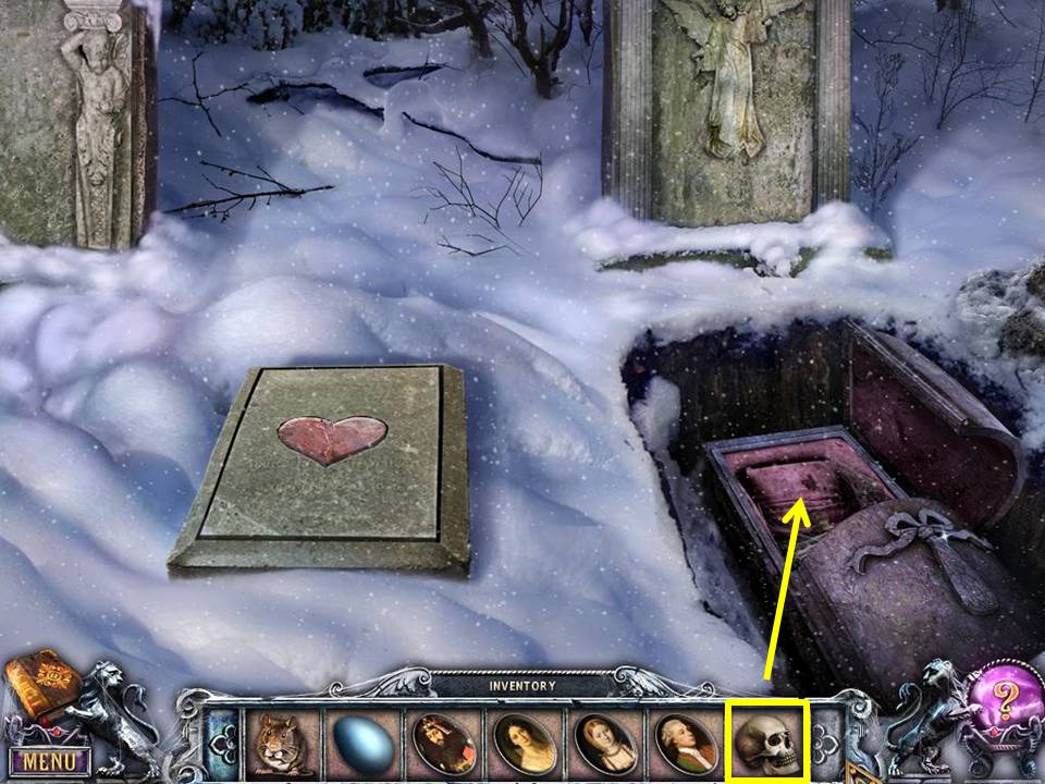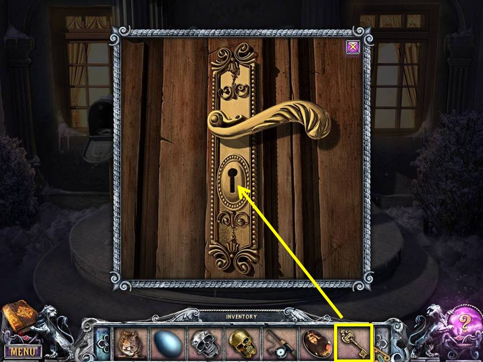 - Unlock the winter scene painting with the SKULL-SHAPED KEY.