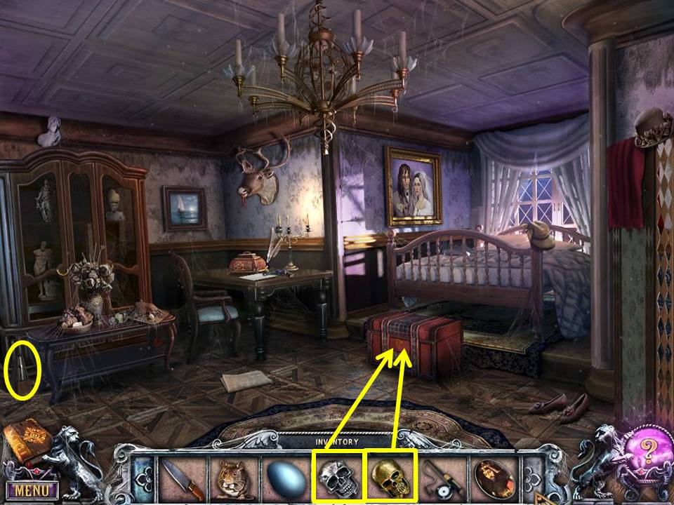 - Place the GOLD SKULL and SILVER SKULL in their appropriate place on the chest to initiate a mini-game.