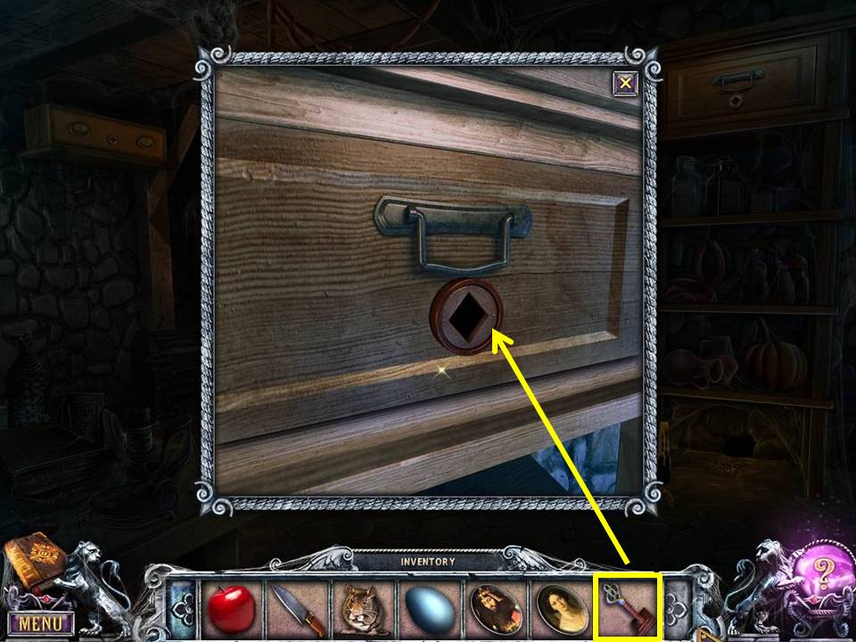 - Take the DIAMOND-SHAPED KEY.