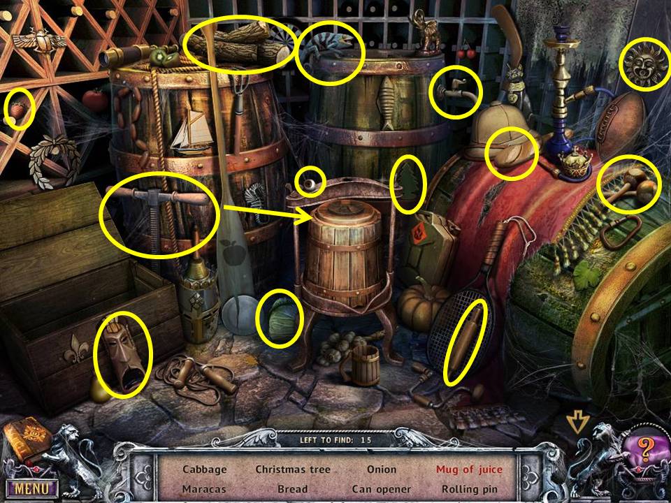 - Zoom into the chest on the upper left to get the onion and can opener.