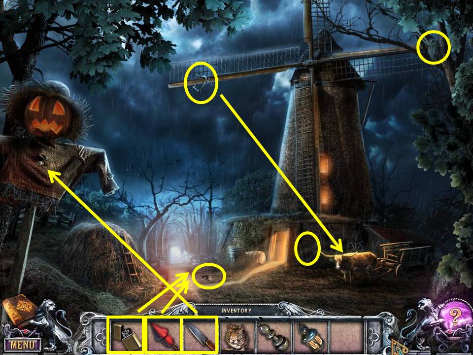 - Cut open the scarecrow with the KNIFE.