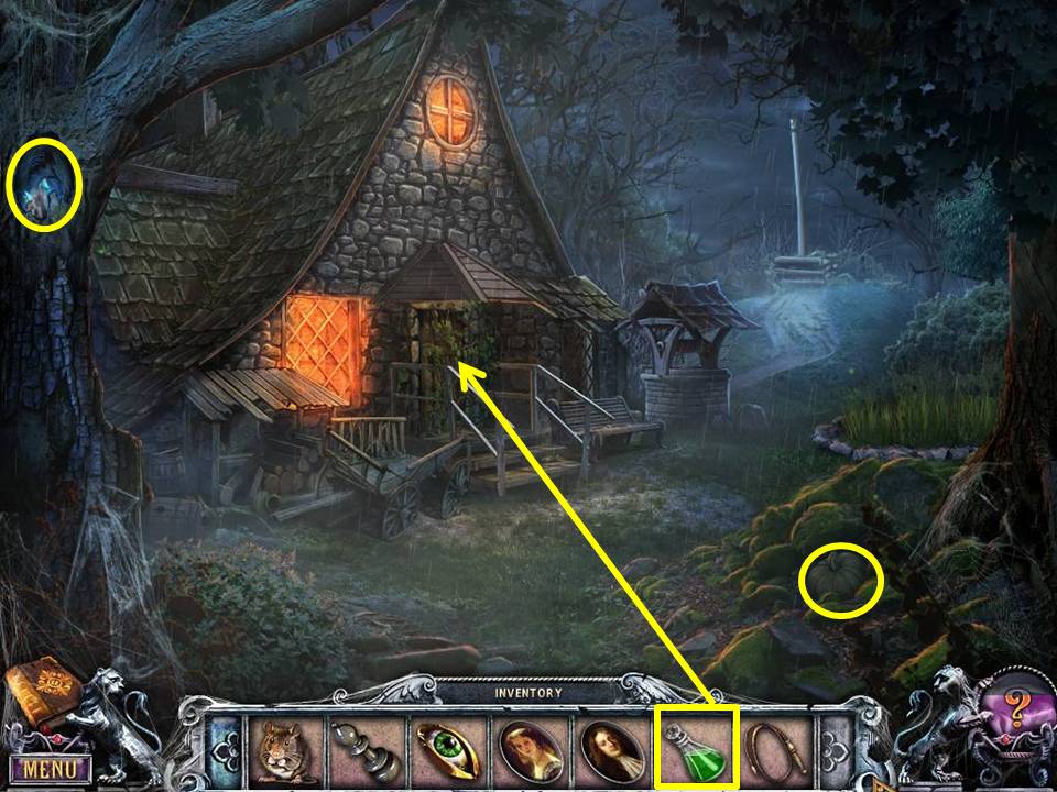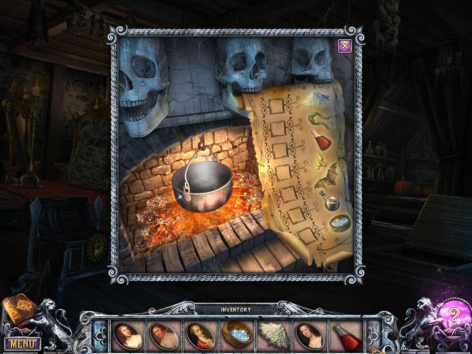 - Make a potion in the pot with RESIN, FROG LEGS, MERCURY, BAT WINGS, CRUSHED GEMS, FLOUR, and WOLF BLOOD.