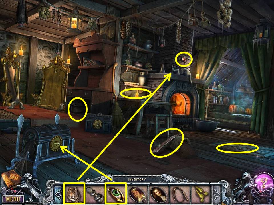 - Take the PORTRAIT and the FROG LEGS near the cat.