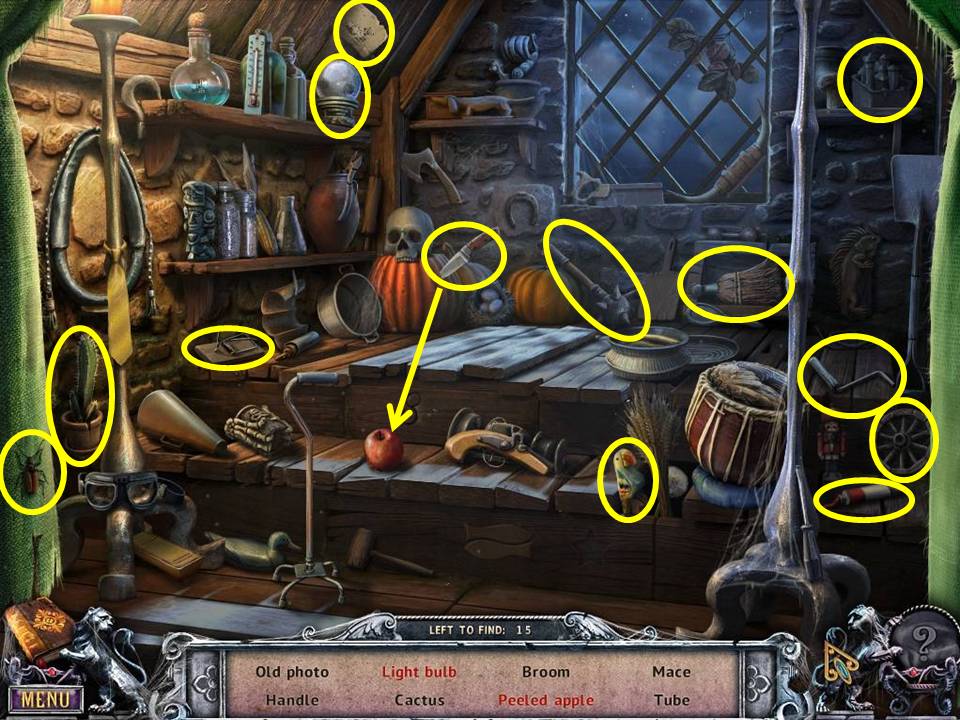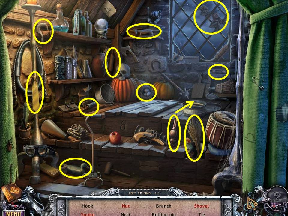 - Enter the Hut and play the Hidden Object Area.