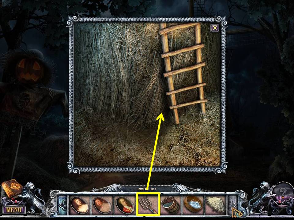 - Search the hay with the PITCHFORK.