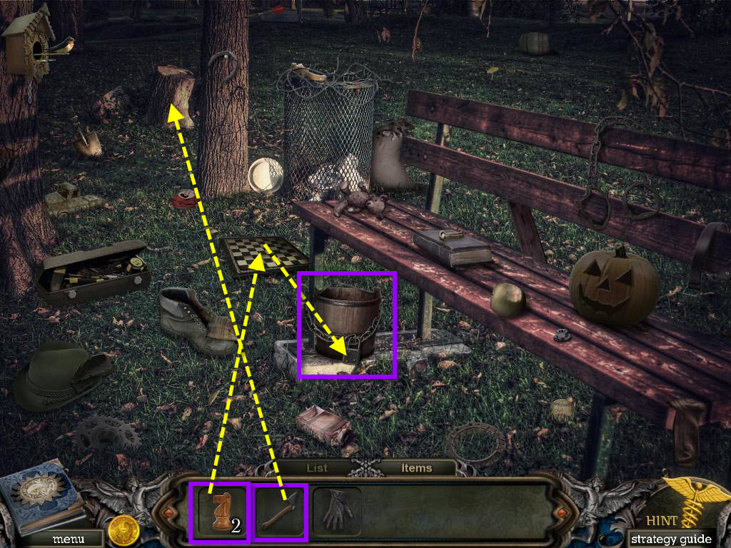 - Use the BUCKET on the water and get the BUCKET OF WATER.