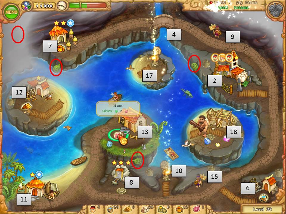 - Clear to pig farm, build and upgrade 3 times