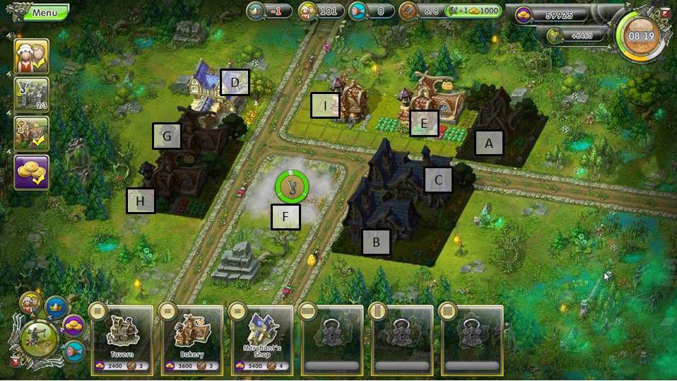- Build a garden to the right of the tavern and upgrade fully (D)