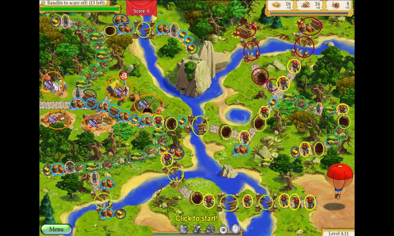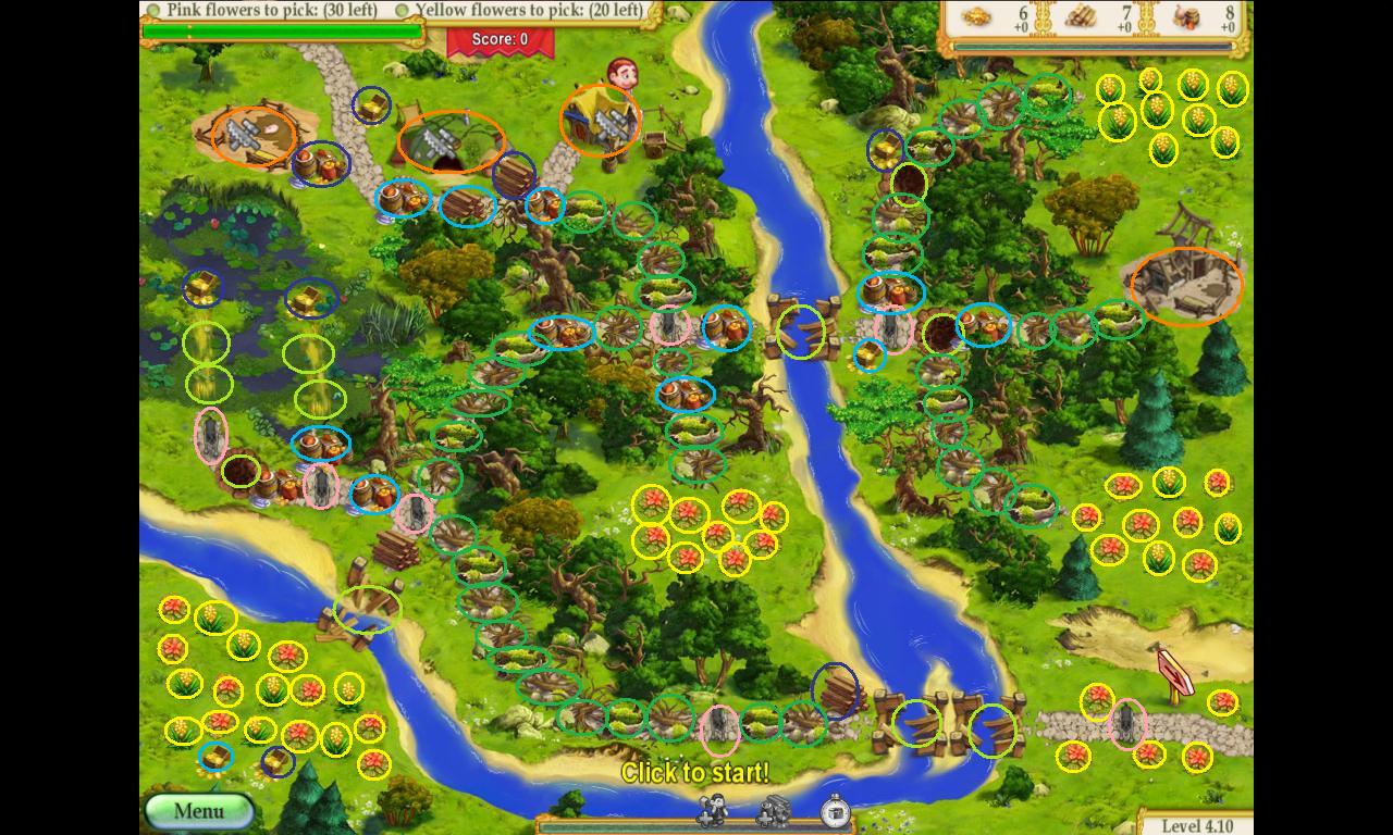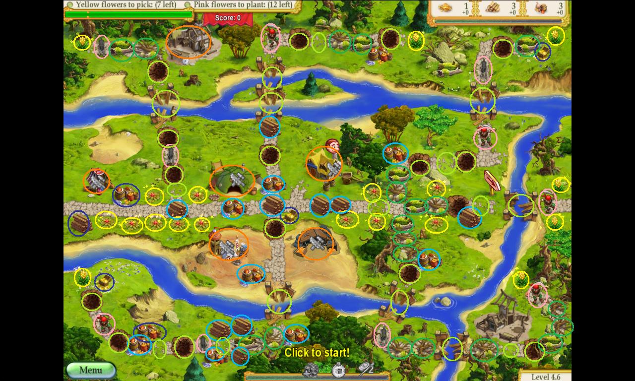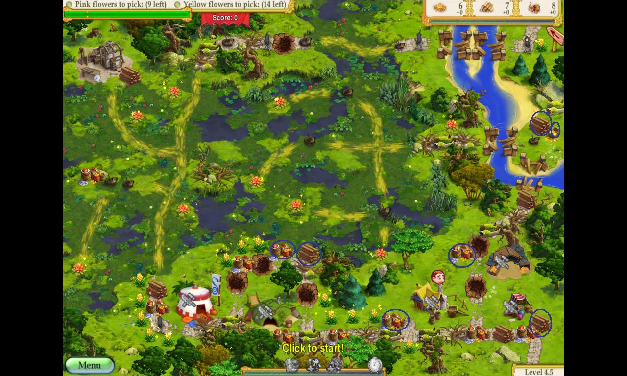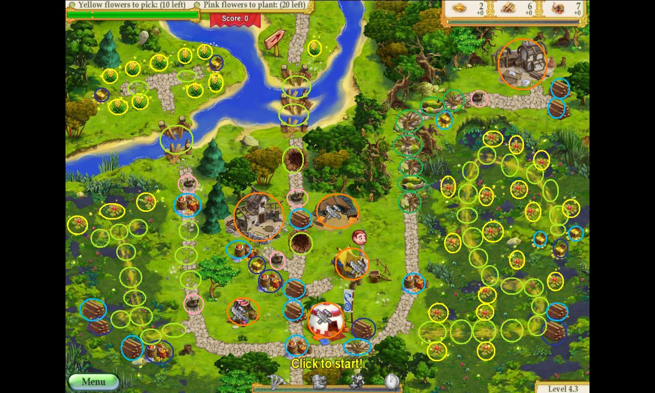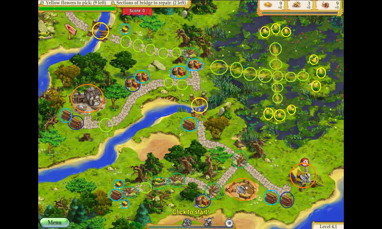 14. With the rest of the level, you need to try to do set up things like bridges to do wood the ½ resource bonus and do things like repairing the road and picking flowers while waiting