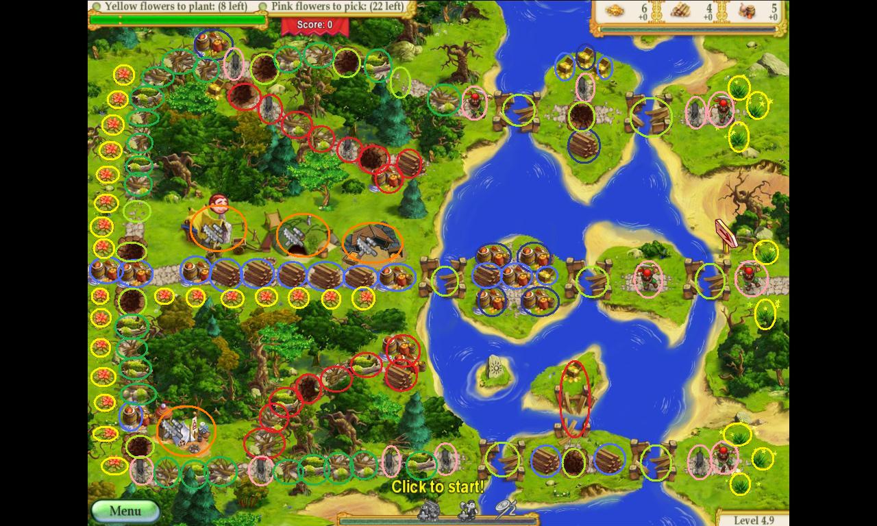 16. Remove the pirates as you have the gold but do not worry about the flowers as long as you have road building to do