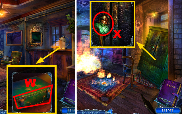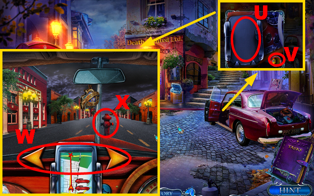- Place the DEAD GPS (U) and CHARGER (V). Play the mini-game.