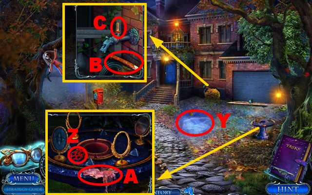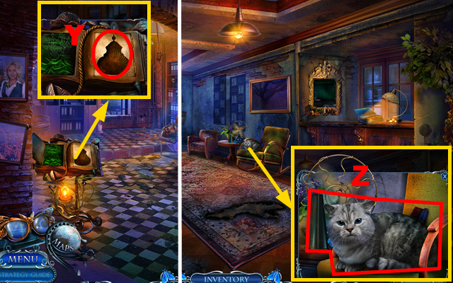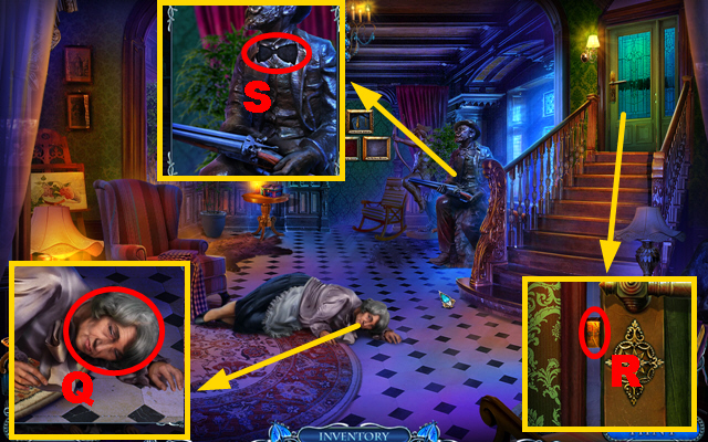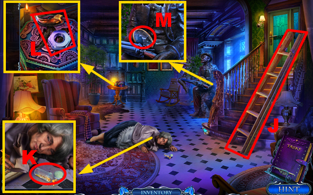 - Use the HAMMER, take the BOW TIE, and PACKAGE (green).