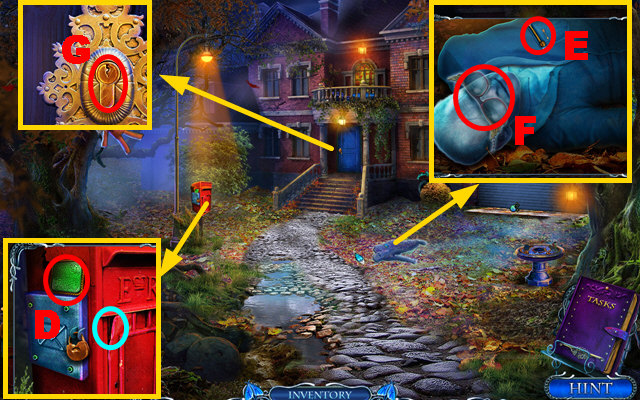 - Place the KEYCHAIN, take the note, HOUSE KEY, and DETOX PILL (E); take the SUNGLASSES (F).