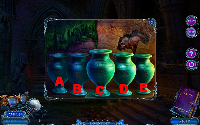 - Insert the MARCUS FIGURINE and take BROKEN SKULL 1/2 (E).