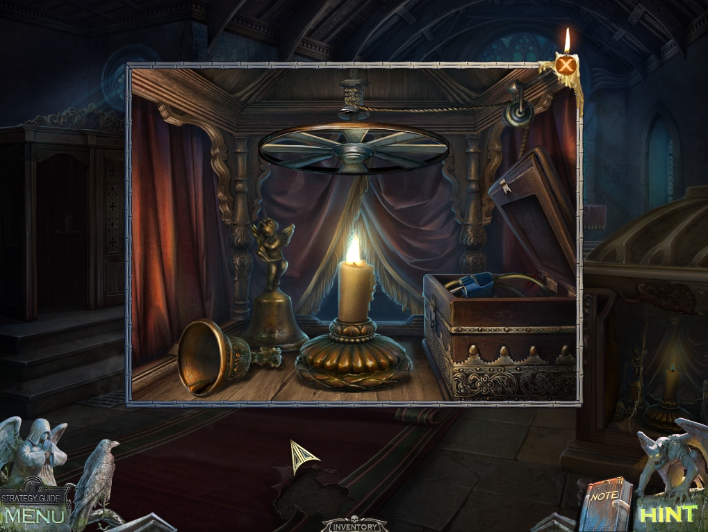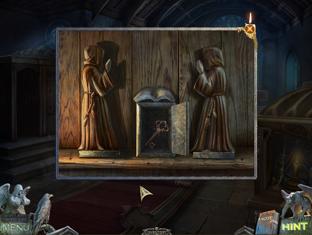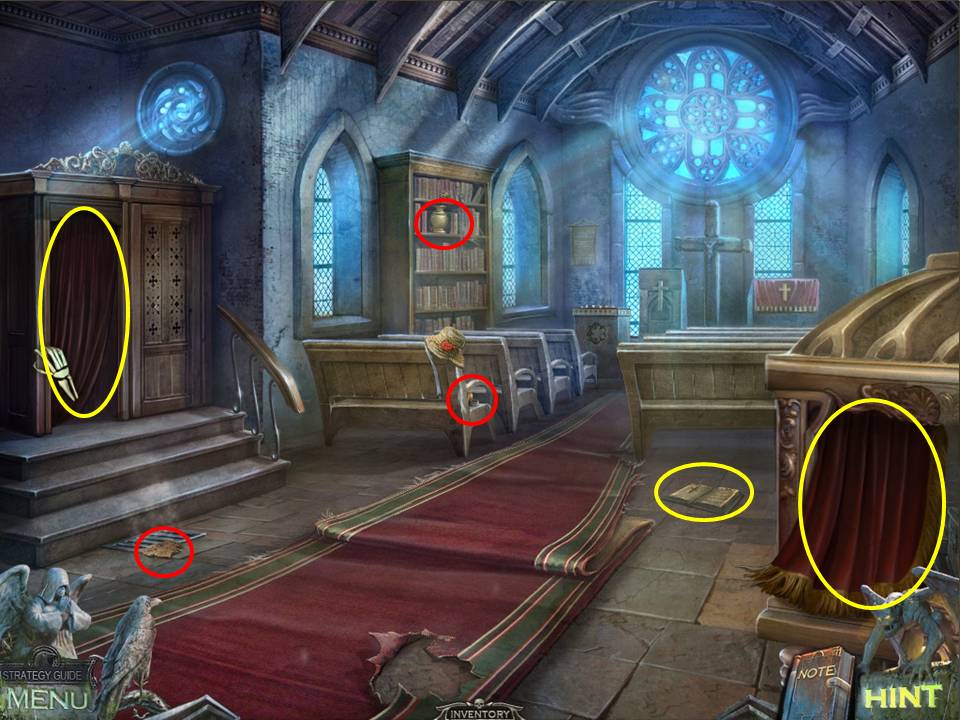 - Move the curtain over the confessional door on the left.