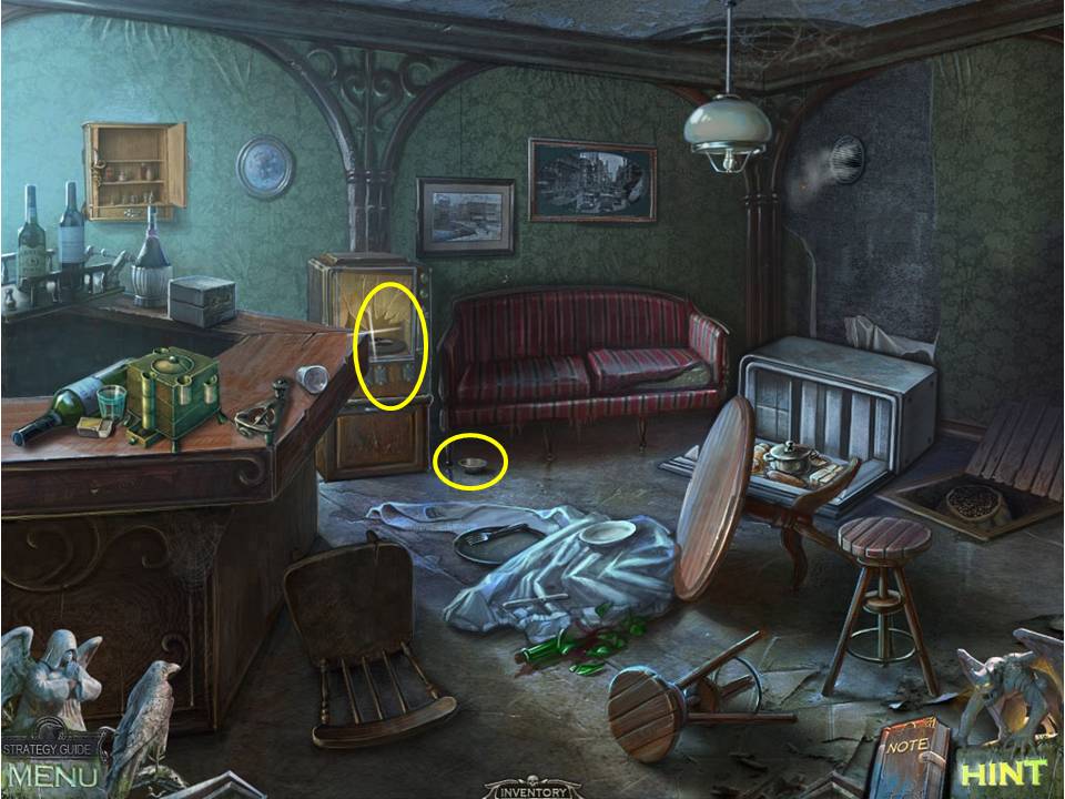 - Zoom into the jukebox next to the couch, insert the COIN in the slot to make the machine grab a record, and take the DESIGN PIECE that you’ll find on top of the record.