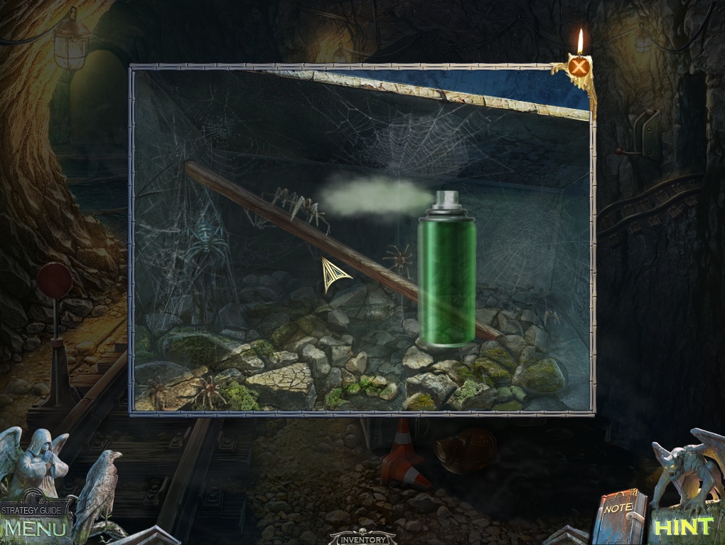 - Exterminate the spiders with the INSECT SPRAY and take the PENCIL.