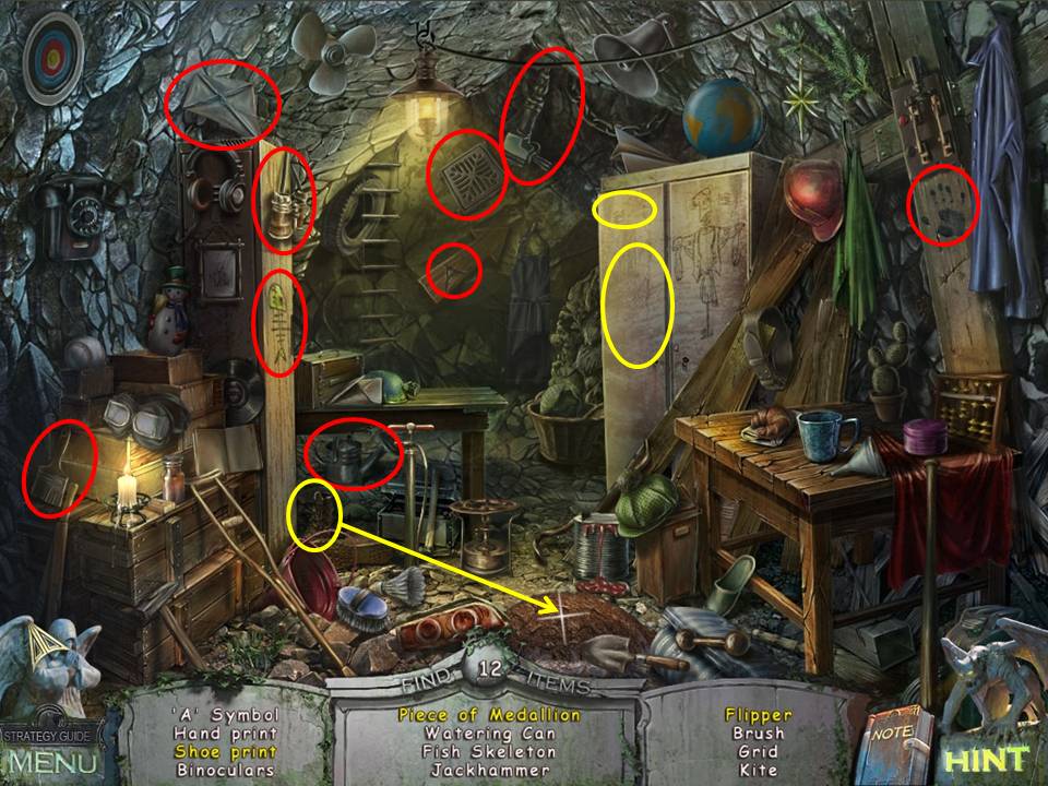 - Find the items listed, noting that the amulet and the flipper are hidden in the closet.